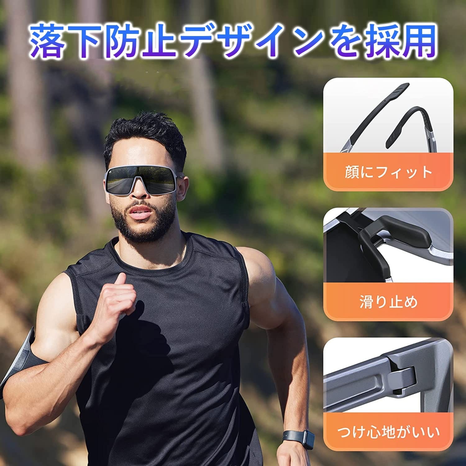 サングラスは運動中のいい掛け心地を実現するために、フレームは軽量で柔軟性があるTR90材料を採用し、わずか32gの重さです。長時間かけても鼻と顔に圧迫感はありません。TR94フレームは堅固な構造造形で、変形しにくく、強い耐衝撃能力を持ち、しかも品質が軽く、着用者に最も快適なフィット感を提供します。